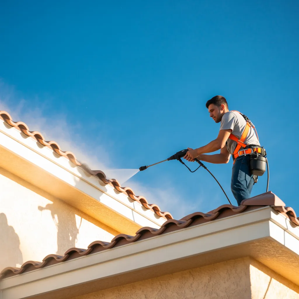 When preparations are complete, the technician will use a pressure washer to apply water at varying pressures, based on the surface being cleaned. The process may involve applying eco-friendly detergents for difficult stains, followed by cleaning with high-pressure water.